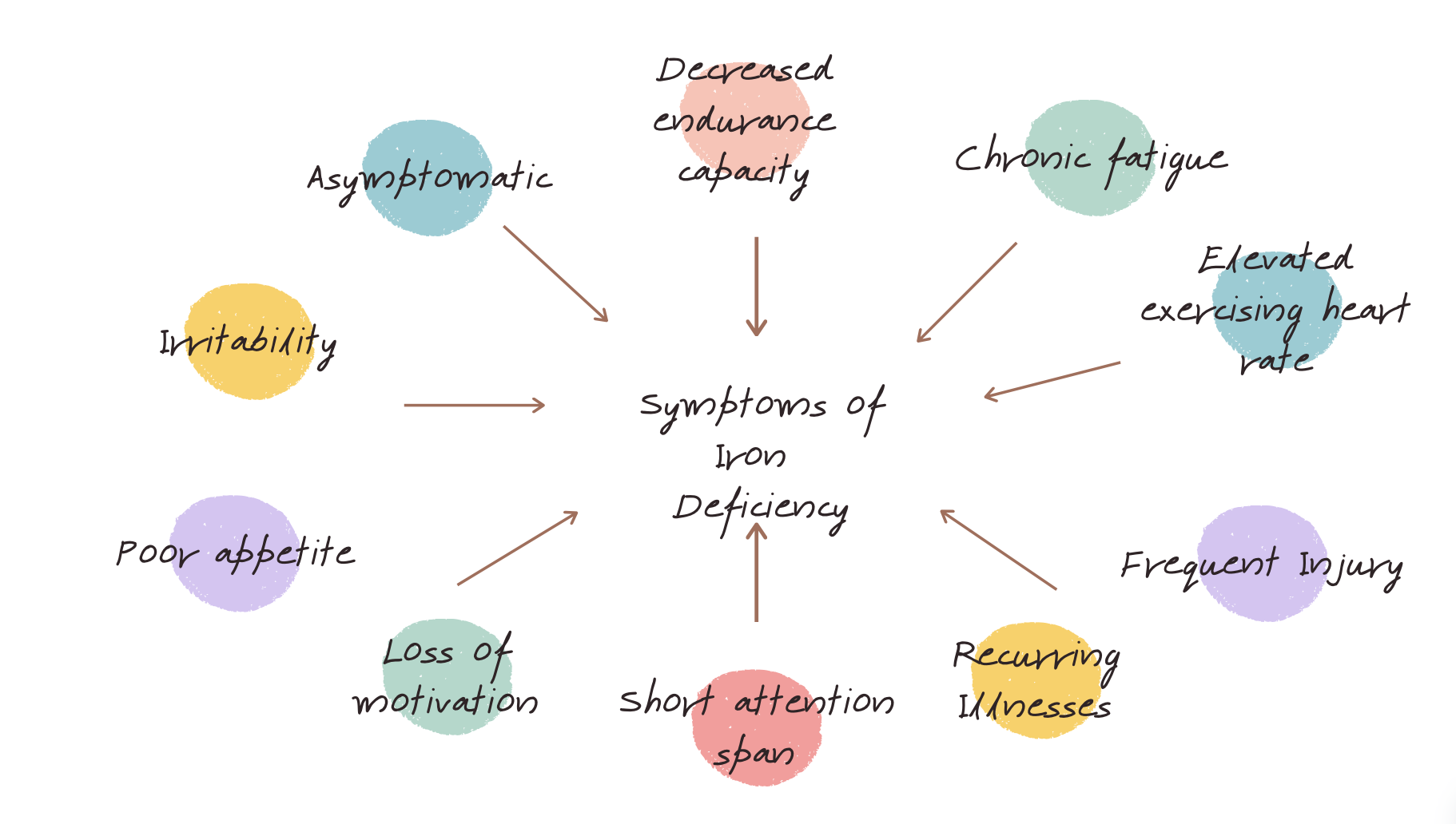 Figure 2: Here are some of many symptoms and consequences of iron deficiency. Please speak to you doctor or a medical professional if you are experiencing any of these symptoms.